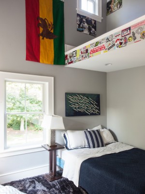 Не исключено, что в подростковом возрасте многие дети начинают проявлять свою заинтересованность к спорту, поэтому спортивный уголок может в таком случае занимать немало места в комнате. Ведь на данный момент — это его главный интерес в жизни. Также не исключено, что небольшая часть комнаты может быть отведена под любимое занятие ребенка: живопись, моделирование и т.п.