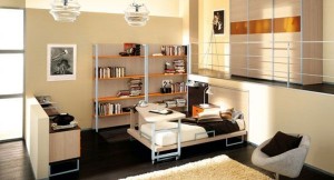 Для маленьких комнат подходит использование модели — трансформер. Это позволит сэкономить пространство. Помощниками в этом деле станут также кровать – чердак, с расположенным на первом этаже рабочим местом, на втором – спальном или откидывающаяся кровать.