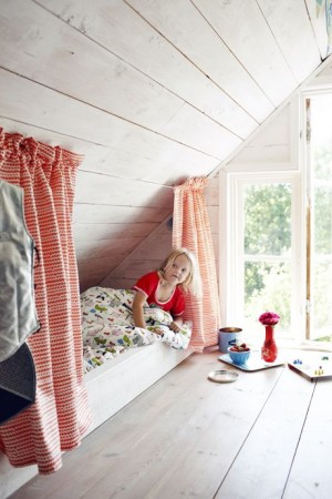 Чем меньше окно в детской, тем значимее его безукоризненная чистота и прозрачная невесомость занавесок. Не приветствуются перегородки, затеняющие какой-либо угол комнаты. Естественный солнечный свет – непременное условие здорового развития, физического и психического.