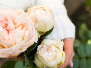 Добавляйте цветы разной степени раскрытия: от плотных бутонов до полностью распустившихся пионов. Это придаст букету динамику и глубину.