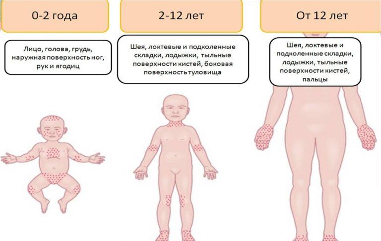 Дети в возрасте от года до трех чаще всего страдают от красной потницы. Чаще всего сыпь локализуется на участках тела, где нежная кожа ребенка собирается в складки: в паху, на попе, в подмышках, на шее, боках реже — на спине и лице. Когда пятна или прыщики появляются уже на лице ребенка, это свидетельствует о переходе раздражения в запущенную форму. Несмотря на то, что потница не смертельна и не заразна, игнорировать ее нельзя: раздражение доставляет малышам сильный дискомфорт, из-за зуда они могут плакать целый день.