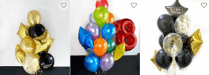 - Сам товар. Латексные или фольгированные шары разных размеров, формы (круглые, цифры, сердца) и покрытий (хром, золото, пастель).